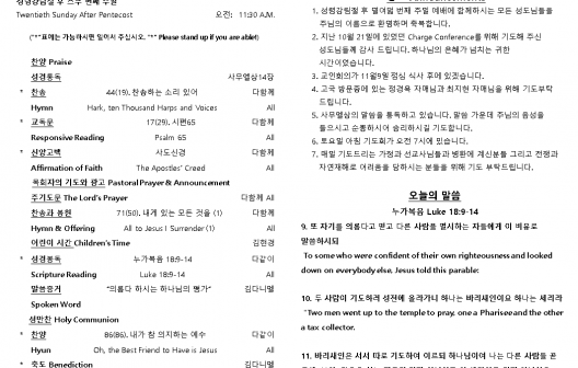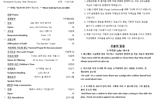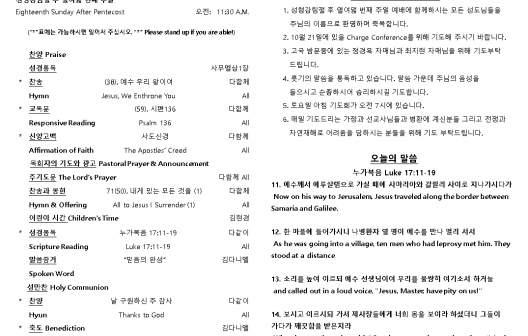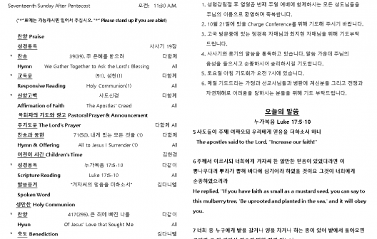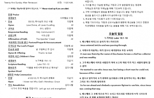 2025년 10월 19일 주일 예배 주보