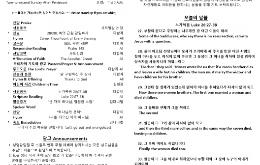 2025년 11월2일 주일 예배 주보