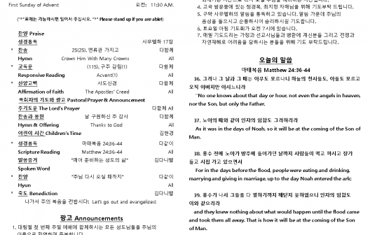 2025년 11월 30일 주일 예배 주보