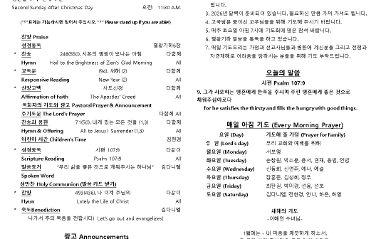 2025년 12월 28일 주일 예배 주보