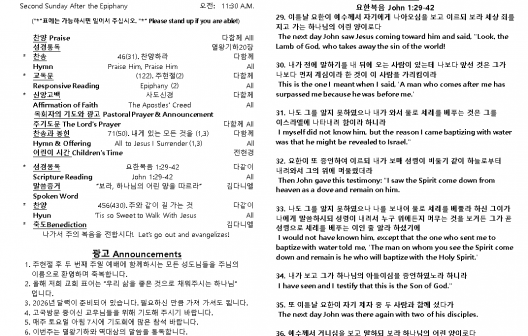 2026년 1월 11일 주일 예배 주보